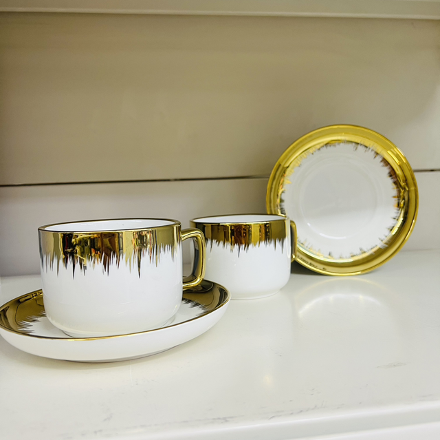 Tasse à café blanc/doré (pique) effets carré 6 tasses+6 sous tasses
